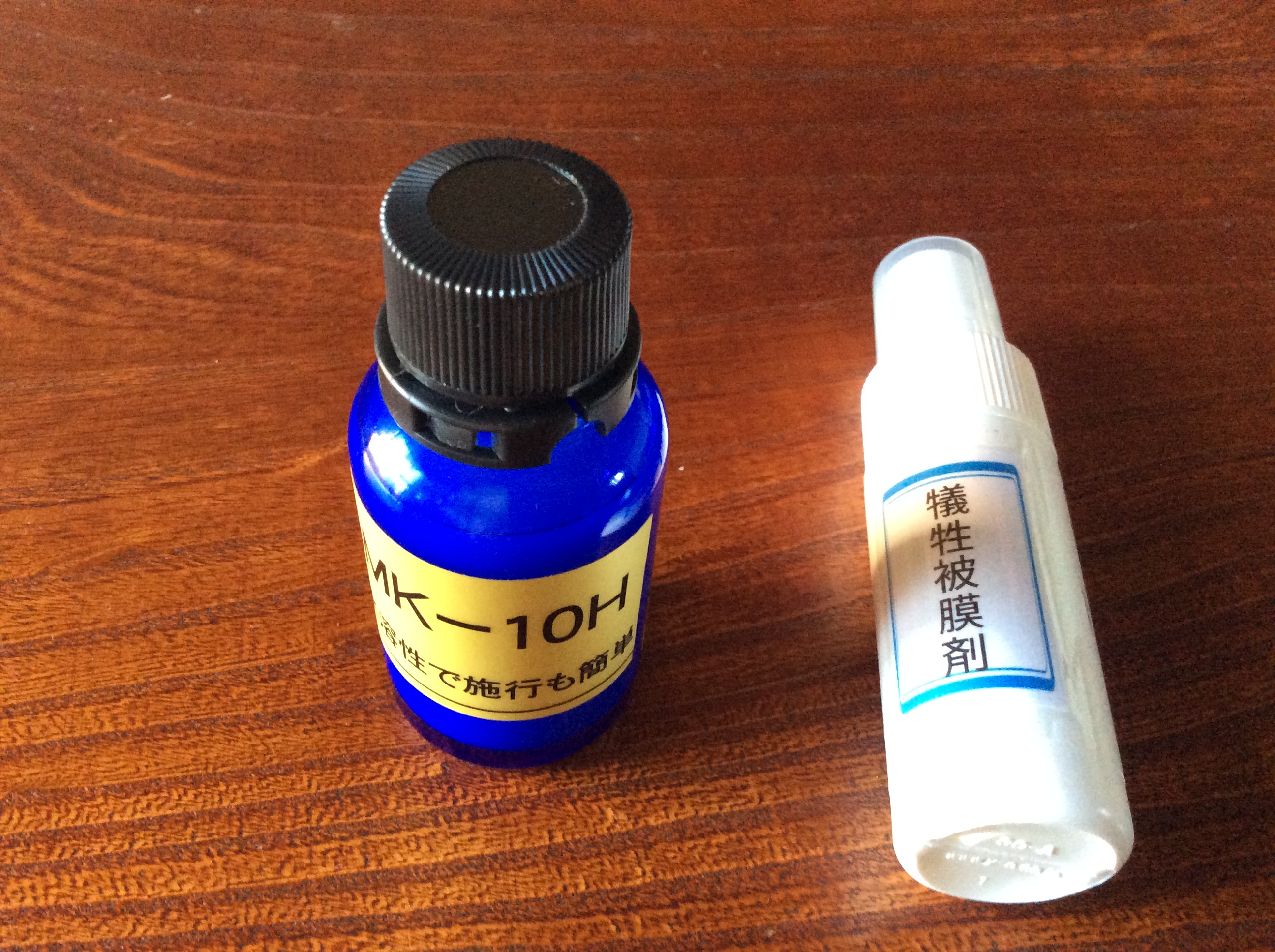 これは、当たり前の硬化型コーティング剤とは違って、水溶性溶剤を使用しています。